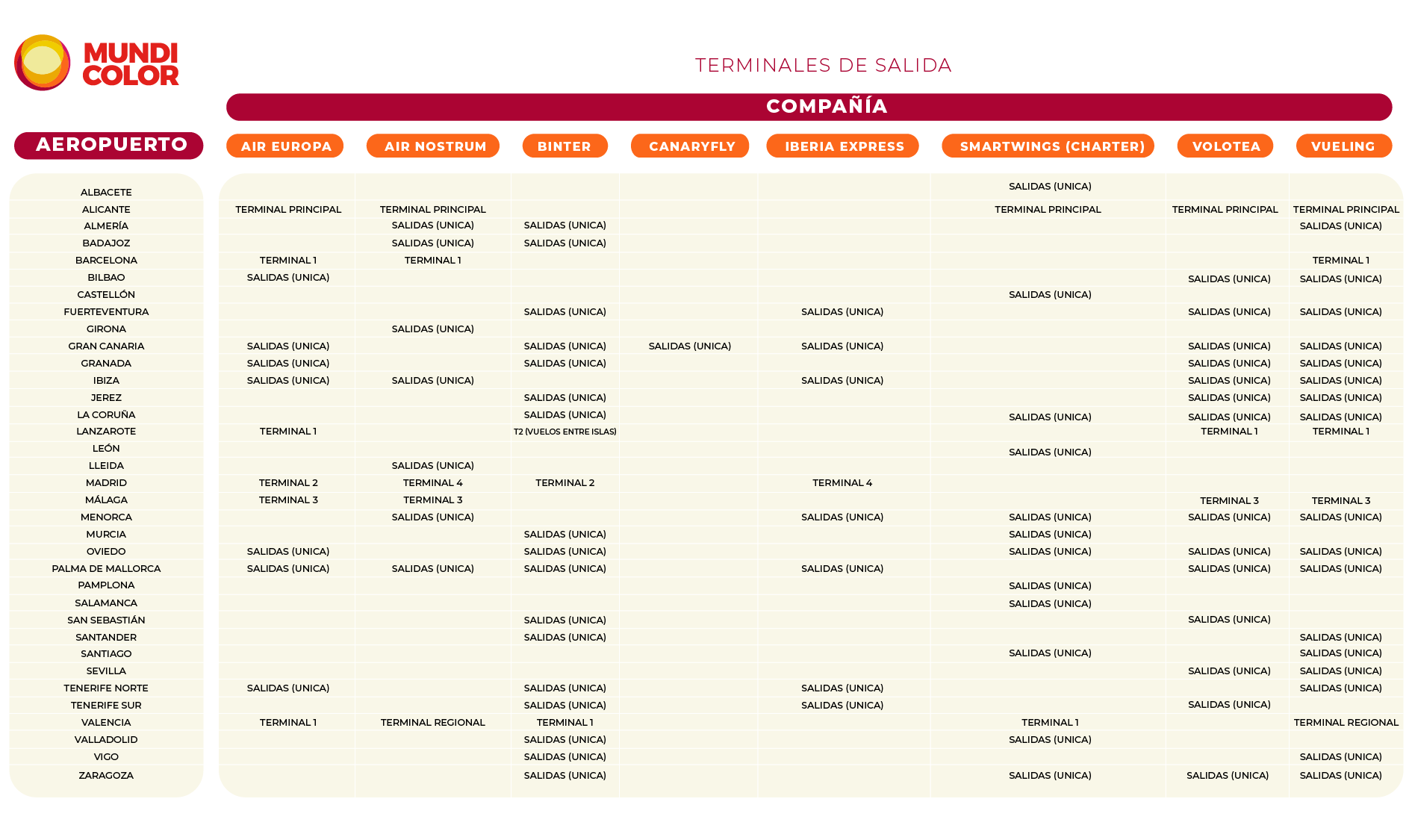 EQUIPAJE Y TERMINALES DE SALIDA